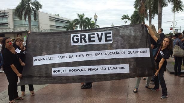 Mais de 600 professores e servidores municipais de Campos fizeram manifestação na Praça São Salvador na tarde desta sexta-feira (22). De preto, com nariz de palhaço e marcados com asteriscos, os profissionais lotaram o local com cartazes e apitos e utilizaram um mini trio elétrico para falar sobre as condições das escolas. Minutos após o início do ato, os manifestantes seguiram em caminhada pela cidade para a frente da Prefeitura de Campos, para a realização de uma assembleia para definir os próximos rumos do movimento.